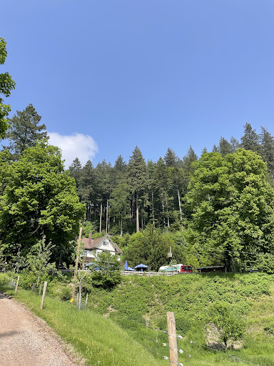 My wife and I began hiking from Freiburg up through the actual ungroomed forest paths until we reached some of the more groomed paths that lead you all over the area. (We'd been on some of those the day earlier when we climbed up to the Schlossburgturn) From there we walked for a long time through the forest paths, which on its own, was absolutely beautiful. But if going all the way to the Waldrestaurant St. Ottilien, be prepared for a hike. I think it was around 5.5 kms to get there, but it was VERY worth it. The restaurant does have indoor seating, but if the weather is good, sit on the large patio under the giant, lanterned tree - it felt a little like we were amongst the elven cities from LOTR. And the food was amazing... we had a local red wine, I only got (a giant plate of) fries, but my wife had an amazing wurstsalat with fried potato. All of it was amazing and was a fantastic way to break up the total 11km trip. The food, the views, the staff - all of it was a true German...