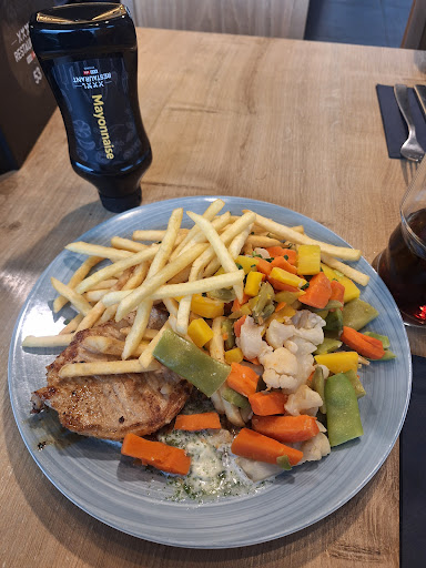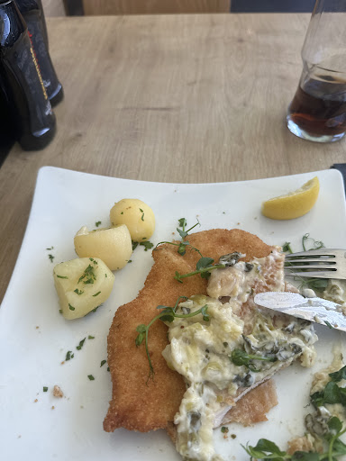 Read moreWir haben uns zu dritt entschlossen während unseres Aufenthaltes noch "kurz" was zu essen. Es dauerte eine Weile bis wir Getränke und Essen bestellen konnten. Bis die Getränke kamen verging eine Weile. Auf das Essen warteten wir jedoch 1 Stunde 15 Minuten!!! Tische, die nach uns gekommen sind, haben viel früher ihr Essen bekommen. Auch die Bedienung hat uns nicht mehr beachtet. Nach einer Stunde haben wir nachgefragt, doch keiner wusste Bescheid. Als das Essen dann endlich kam (wir waren kurz davor unsere Getränke zu bezahlen und zu gehen) war ein Gericht offensichtlich schon länger fertig am Pass gestanden. Die Pommes waren kalt, die Kräuterbutter komplett zerlaufen und das Gemüse war kalt und lasch. Keine Würze, weder an den Pommes, noch am Gemüse. Das Fleisch war sehr dünn, lauwarm und trocken. Das Essen der anderen war wenigstens frischer zubereitet. Für was man aber für frittiertes Schnitzel mit Pommes, Pommes und "Schweinerückensteaks" mit Pommes & TK-Gemüse über eine Stunde braucht ist uns unerklärlich. Leider lieber einen großen Bogen um das...