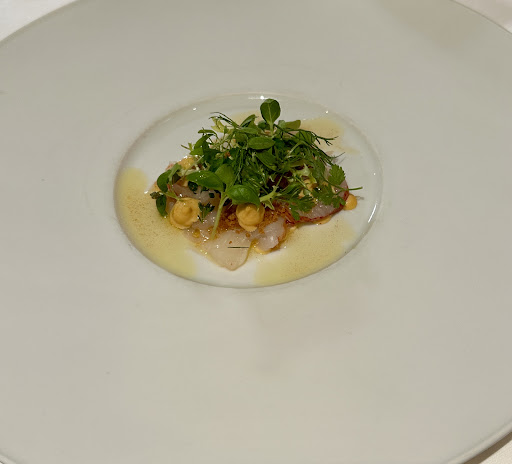The restaurant itself is classically elegant, oozing French fine dining vibes. However, we were slightly surprised not to be offered an aperitif—perhaps a glass of champagne to kick off the evening—and we would have enjoyed some soft background music, as the room was quite still, making neighboring conversations a little too audible.