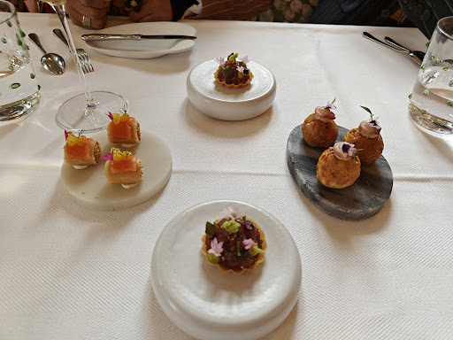 Read moreWir hatten am 9. Mai um 18:00 Uhr für zwei Personen reserviert. Wir waren um kurz vor sechs dort und standen vor einem verschlossenen Hoftor. Daraufhin haben wir geklingelt, und es kam nach kurzem beiden ein junger Mann ans Tor und schaute uns mit einem Blick an, als wüsste er gar nicht, was wir hier eigentlich wollen. Als ich ihm mitteilte, dass wir reserviert haben. Schloss hat dann doch zögerlich das Tor auf und bat uns in den Hof. Er sagt uns, wir sind zu früh und müssten noch warten und drehte sich um und ins Haus und lese und stehen wie zwei an der Bushaltestelle, wo der Bus nicht kommt. Circa 2-3 Minuten später kam er wieder raus. In der Zeit überleg ich mir schon, ob ich wieder gehen soll aber ich hatte Hunger. Er bat uns dann hinein und führte uns zu dem Tisch. Der Gastraum ist sauber, aber sehr schlecht. Die Holzbänke an den Tischen mit Polstern belegt waren unbequem für mein Gefühl und luden nicht zum verweilen ein. Wir waren die ersten Gäste Und wir bestellen einen Aperitif. Um die Sache jetzt abzukürzen. Das Essen war handwerklich und qualitativ sehr gut. Zum satt essen sind die Portion natürlich nicht. Die wein preise sind gesalzen. Pfälzer Wein gereicht in 0,1 l Mengen Beginnend preislich mit fünf Euro, für meinen empfinden zu teuer für Pfälzer Wein. Ständig wurde ungefragt nach geschenkt. Man muss natürlich auch sagen 0,1 sind zwei Schluck, und das Glas war ständig leer. am Ende gab’s noch ich nehme mal an hausgemachte Pralinen, die unglaublich lecker waren. Um auf die Toilette zu kommen, muss man das Haus verlassen und im Hof irgendwo im Freien ist dann die Toilette sehr ungewöhnlich für eine Gaststätte, die solche Preise aufruft. Abschließen noch mal gesagt das Essen war geschmacklich toll, aber extrem wenig. Von mir gibt es...