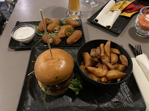 The staff was friendly during my visit. Unfortunately the food was mediocre only in my opinion. I ordered jalapeño poppers as a starter and a veggie burger with hand cut fries as a main. Oddly everything came at the same time out of the kitchen. The poppers were good in taste, but there‘s almost nothing, which can be wrong with them. The burger came lukewarm and was average in taste only. I expected more flavors in it and the falafel patty needs more spices in my view. The fries were unsalted. Finally prices were too high for what you got. One thing really bothered me and this was the overall depressing grey color in...