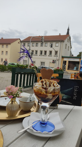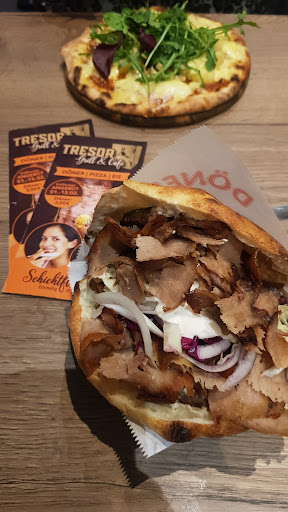 Read moreIch bin schon öfters vorbeigefahren und der Name "Tresor" weckte sofort meine Neugierde! Nun war es am 31. August 2022 endlich soweit, dass ich der Sache auf den Grund gehen konnte. Schon beim betreten des Cafés fiel mir sofort eine robuste, schwere Tür auf. Ich schaute sie mir genauer an und sprach sogleich den Inhaber darauf an, ob es eine Art Attrappe oder gar eine originale Tresortür ist. Der Herr strahlte eine sehr angenehme Art und Freundlichkeit aus! Sofort erzählte er mir bereitwillig, bestens informiert, sichtlich begeistert und wohl auch stolz von der Vergangenheit dieses Gebäudes. So zum Beispiel das es in den Kriegszeiten eine Reichsbank und später zu DDR-Zeiten eine Sparkasse gewesen ist. Warum ich dieses alles erwähne bevor ich meine eigentliche Bewertung abgebe? Nun, da sind wir schon beim ersten Grund. Ich möchte dem Inhaber dazu nämlich empfehlen, den geschichtlichen Hintergrund zu erwähnen. Sei es auf den Speisekarten oder gut ersichtlich an einer Art Schautafel. Denn dieser geschichtliche Hintergrund sollte erwähnt werden! Doch nun meine eigentliche Bewertung. Ich habe einen Eisbecher Krokant gegessen. Er war hübsch dekoriert, reichlich portioniert und schmeckte köstlich! Die Schlagsahne darauf begeisterte mich mit ihrer Konsistenz. Außerdem war sie weder zu süß oder zu lasch! Denn dies ist nicht immer so bei anderen Eisdielen. Bei einem Milchkaffe wurde (Ohne extra Bestellung!) als guter Service des Hauses ein Glas Wasser serviert. Ich finde dies eine nette Geste vom Haus! Ich saß zunächst im Biergarten. Dort erfreute es mich, dass die Bedienung flott und freundlich war! Aber einen kleinen Denkanstoß möchte ich wegen der Abgrenzung zur Straße und eigentlich ringsherum geben. Es wäre doch ganz hübsch, wenn man dies durch eine Hecke machen könnte! Das erhöht das Flair und macht es gemütlicher! Denn wer sitzt nicht gerne im Grünen!? Dies würde ich übrigens auch für den Innenbereich empfehlen. Stellen Sie doch einige pflegeleichte Pflanzen auf. Doch durch ein etwas größeres Aquarium wurde schon eine gewisse Gemütlichkeit erzielt und lässt bestimmt so manchen Tierfreund begeistert die Fische beobachten und Kinderaugen strahlen. Auch finde ich die Gestaltung der Decke toll! Es ist wohl eine Art bedrucktes Glas. Schön finde ich auch eine erhöhte Sitzfläche am Ende des Raumes, die zudem noch abgegrenzt ist. Denn diese bietet sich bestimmt für kleinere geschlossene Gesellschaften und Feiern an! Außerdem lockert es den Raum etwas auf. Da ich garantiert wieder komme, möchte ich NOCH etwas mit einen etwaigen Update abwarten. Schließlich will ich auch noch eine Pizza kosten. Alles Gute dem Unternehmen und einen regen Zuspruch...