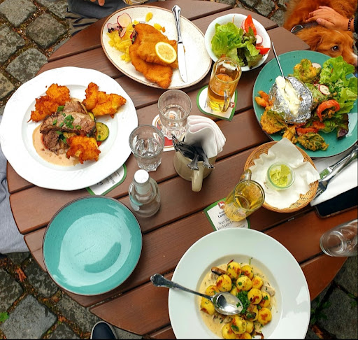 Der Service hingegen war sehr freundlich und zuvorkommend, was positiv hervorzuheben ist. Das Essen wurde in unserer Gruppe insgesamt als durchschnittlich empfunden. Ein Lichtblick waren die Garnelen als Vorspeise, die wirklich hervorragend waren. Mein Hauptgericht, der Wildbraten, hingegen war enttäuschend: Das Fleisch war zäh, die Semmelknödel verkocht und matschig, und die Soße konnte geschmacklich leider nicht überzeugen – das für 25 € war definitiv nicht gerechtfertigt.