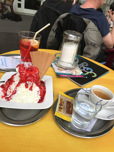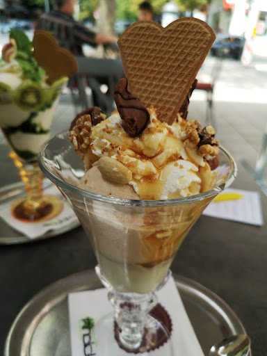 Ganz tolles Eis-Café. Waren vor zwei Tagen mit unserer kleinen Tochter da. An diesem Tag, Sonntag, was wunderschönes Wetter und so war das Café brechend voll und wir haben den aller letzten Sitzplatz bekommen.