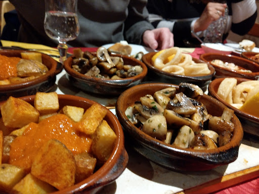 Hier gibt es gute spanische Tapas und auch gute Hauptgerichte für Fans der spanischen Küche! Von mir gibt es allerdings leider etwas Abzug, da das Restaurant meinen persönlichen Geschmack nicht so ganz getroffen hat und für Veganer gänzlich ungeeignet ist und für Vegetarier sehr eingeschränkt. Ich konnte trotzdem etwas vegetarisch finden (die Vorspeisenplatte) und habe noch verschiedene Brote dazu bestellt. So wurde ich dann schon satt, muss aber sagen, dass ich im Vergleich zu den Fleisch- und Fischessenden etwas deprimiert über die Auswahl war, die mir zur Verfügung stand... Neben der Tapasplatte hätte ich sonst nur noch vegetarische Nudeln nehmen können, was für mich nicht gerade nach spanischer Küche schreit... Wenn es hier 2-3 spanische vegetarische Gerichte mehr gäbe, würde ich das Essen besser bewerten. Die Paella soll sehr lecker gewesen sein. Hier war meine Begleitung allerdings nicht so begeistert davon, dass sie die Shrimps selbst schälen mussten. Sie wussten nicht wie das ordentlich funktioniert und so wurde es leider eine ziemlich unappetitliche Angelegenheit bei der am Ende nicht viel vom Shrimp übrig blieb. Dafür kann das Restaurant nichts, aber es wäre schön, wenn die Shrimps schon geschält wären. So oder so sind nach dem Schälen die Hände vollkommen dreckig und müssen mitten während dem Essen gewaschen werden, was eher unpraktisch ist. Der Service war freundlich und bemüht und das Ambiente sehr passend spanisch eingerichtet. Es war weder zu kalt noch zu warm im Restaurant. Beim Rausgehen haben alle nett gegrüßt. Die Toilettenkabinen waren sehr klein und eng, aber alles war sauber. Insgesamt würde ich nicht wiederkommen. Wenn mehr vegetarische Gerichte ergänzt werden, würde ich es mir überlegen und nochmal...