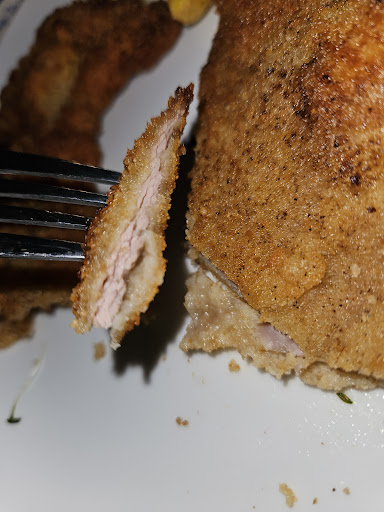 Bei meinem zweiten Besuch aß ich Schweinelendchen mit Dotsch, auch als Reibekuchen bekannt. Die Lendchen waren mit gebratenem Speck belegt und verschiedenen Pfeffern gewürzt. Auch dieses Gericht hat sehr gut geschmeckt.