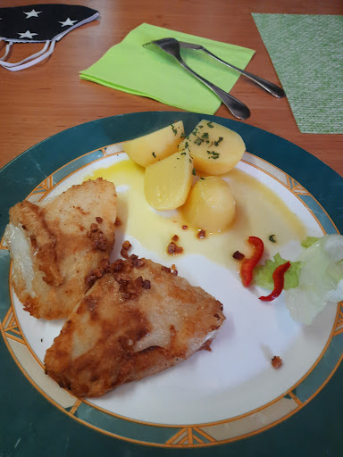 Beim ersten Mal gab es bei uns Fischstäbchen, Forelle "Müllerin Art" und Karpfen Blau. Und beim zweiten Mal hatten wir wieder Fischstäbchen und noch das Welsfilet mit Käse überbacken. Die Essen waren wirklich ausgezeichnet.