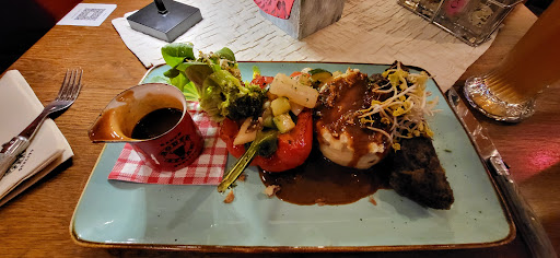 Read moreWir haben eine längere Anfahrt in Kauf genommen, um den Geburtstag einer Freundin zu feiern und waren zum gemeinsamen Essen vor Ort. Das Wetter war überraschend schlecht geworden, aber der Tisch war reserviert, deshalb fuhren wir trotzdem los. Kurz nach unserer Ankunft lasen wir das Schild, dass es keinen Zugang für Hunde weder drinnen noch im Außenbereich gibt. ( Auch nicht für die kleinen Süßen!) Also gingen wir kurz noch eine kleine Runde mit unserem kleinen Dackel und verpackten ihn wieder warm in seinem Sitz. Da meine Freundin im Rollstuhl sitzt und es etwas mehr Zeit in Anspruch nahm, ging ich schon ins Restaurant, um die Toiletten aufzusuchen. Am Empfang blickte mich ein griesgrämiger Herr schon hinter dem Tresen am und schnaufte schon etwas, als ich sagte, dass ich kurz mal das WC aufsuchen würde. Als ich erklärte, dass wir einen Tisch bestellt hatten, zeigte mir die Dame dann an der Bar die Richtung und der "freundliche" Herr beobachtete alles ziemlich argwöhnisch. Leider fliegt nun mal ein Rollstuhl nicht, nicht mal über Schnee, und somit ließ es sich leider auch nicht vermeiden, etwas Tauwasser zu verlieren, was wieder für ein Schnaufen sorgte. Das Restaurant ist nett eingerichtet, Parkplätze in der Nähe, die Mitarbeiter freundlich. Letztendlich war das Essen wirklich geschmacklich sehr gut, ausreichend und auch das Preis- Leistungsverhältnis stimmte. Das Restaurant hatte einige Stammgäste vor Ort, war aber nicht ganz ausgelastet, aber die Mitarbeiter wirkten gestresst. Nach dem wir bezahlt hatten, kam bei allen das Gefühl auf, förmlich aus dem Laden heraus geschoben zu werden, es war die ganze Zeit über eh eine komische Stimmung in der Luft, man fühlte sich eher geduldet. Da ich selbst schon Gastronomie selbst geführt habe und daher weiß, dass gute Gastronomie nicht nur etwas mit guter Küche und einen netten Ambiente zu tun hat, sondern dass sich die Gäste wohl und willkommen fühlen sollen, denn nur dann ist auch nur garantiert, dass ein Großteil dieser Gäste wiederkommen oder positive Werbung streuen wird, hier hat man eher den Eindruck, dass es am allerwenigsten um das Interesse und Wohl des Gastes geht. Wir werden nicht wieder kommen, weder mit Hund noch mit Rollstuhl noch mit...