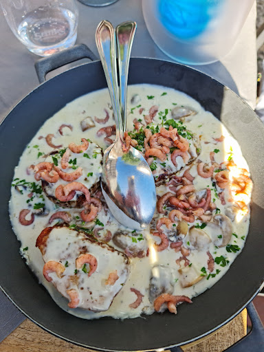Für unseren persönlichen Geschmack negativ zu beurteilen, waren: das schreckliche Licht, sehr ungemütlich und grell. Das geht schöner. das Essen war iO, aber mehr leider auch nicht. Für den Preis darf man besseres erwarten. Wir hatten beide vorab die Paprikasuppe (die war echt lecker), Hauptgang Ente und Ochsenbäckchen. Beides war teilweise zäh. Die Haut der Ente labbrig, nicht kross . Die Beilagen wie Kartoffelgratin klassisch gut und der Rosenkohl war fast das Highlight des ganzen Menüs. Der war echt spitze!!! Entschuldigend muss man hinzufügen, dass man sofort bereit war , Ochsenbäckchen nachzureichen. Dafür Daumen hoch!