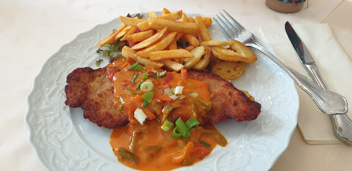Read moreTiefkühlkost - frischer geht's nicht - oder? Bestellte Gerichte: Holsteiner Schnitzel und Schnitzel Wiener Art. Die Hauptzutat, das Schnitzel, schmeckte jeweils gut - besser als es aussah. Der klassische grün-dunkelrote-Tütensalat mit Karottenschnipseln war mit frischen Gurken angereichert; das Salatdressing aus der Flasche etwas nachgesüßt. Immerhin. Beim Tiefkühlgemüsemix zum Schnitzel Wiener Art war das ewig wiederkehrende Geschmackserlebnis unvermeidbar: Die Karotten schmeckten nach Brokkoli und der Brokkoli nach Karotten. Während diese bissfest waren ließe sich der Brokkoli auch durch einen Caprisonne-Strohhalm "genießen". Die TK-Bohnen - vermutlich eine separate Tüte zubereitet in separatem Topf - schmeckten wiederum gut. Unsere Antwort auf die Frage, wie es schmeckte war freundlich und ehrlich: "War gut, aber mit frischem Gemüse wäre es besser gewesen." Daraufhin: "Ist doch frisch." "Nein, es handelt sich um Tiefkühlkost." "Ja, aber frischer geht's doch nicht!" "Na,...