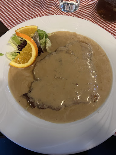 Das Rahmschnitzel.. Bei der Bestellung, haben wir extra nachgefragt ob in der Soße auch Pilze sind. Die Antwort darauf war „ja, es sind Pilze in der Soße“. Wie sie auf dem Bild vielleicht erkennen können, sind dort keine Pilze drin. Daraufhin habe ich auf Nachfrage eine Schüssel mit Pilzen und ein bisschen Soße bekommen. Die Pilze waren ungewürzt, labbrig und einfach ungenießbar. Ich habe dann die Bedienung drum gebeten mir das bitte neu zu machen, der Teller wurde mitgenommen und die Bedienung, die unsere Bestellung aufgenommen hatte kam an den Tisch und meinte sie verstehe den Grund grade nicht. Wir bzw ich haben ihr dann das Problem geschildert und es wurde diskutiert. Es seien minimal nur Pilze drin und das ganze in einem sehr unfreundlichen Ton mit Augen verdrehen beim Abgang. Daraufhin kam dann eine Dame aus der Küche mit einer Speisekarte, die sie mir vor die Nase hält und sagt da steht nichts von Pilzen. Dann durften wir mit ihr auch noch diskutieren und haben mehrfach wiederholt, dass wir extra nachgefragt haben. Ich bin maßlos enttäuscht von so einem Umgang mit Kunden und so einem Verhalten. Das Verhalten hat mir dann auch den Rest gegeben, dass ich darauf verzichtet habe. Wir wurden danach ignoriert, zum zahlen musste meine Oma an die Theke, da keiner kam und das Geschirr stand bis...
