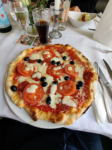 Die Pasta und die Salate waren sehr lecker. Das Cordon Bleu ebenfalls. Meine Pizza ( Calabrese) hatte einen sehr leckeren, knusprigen Boden und Rand, war sehr gut belegt und war wirklich sehr groß. Leider war die Salsicca nicht pikant und der Pizza hat es an Geschmack gefehlt, was ich sehr schade fand. Der Service war in Ordnung. Wir mussten uns leider ab und zu auf uns aufmerksam machen. Ich hatte ein wenig das Gefühl das die Stammgäste bevorzugt behandelt werden. Der Tisch neben uns hatte einen wesentlich schnelleren Service. Vielleicht auch auf Gäste achten die nicht so oft dort sind. Preislich ist alles in Ordnung gewesen. Zu der Geräuschkulisse wäre noch zu erwähnen, das es wirklich sehr sehr laut war. Man hatte sehr große Probleme sich zu unterhalten. Akustikpaneele wären hier wirklich angebracht und sorgen für eine angenehme Kulisse zum unterhalten. Der Gang zu den Toiletten wird wohl für Frostbeulen zum rauchen genutzt, fand ich jetzt nicht so toll.