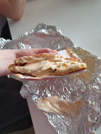 Döner, die Soße ist oben soviel drin, das alles überläuft und man die Hände voll Soße hat. Unten fehlt dann die Soße. Die Soße schmeckt mittlerweile auch total fade.