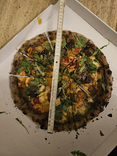 Jetzt aufpassen. Um so trauriger ist es von einer Pizzeria mit einem für den Landkreis sehr teureren Preisniveau, für Essen und viele Getränke, was beim Gast schlussendlich auf den Teller landet. Für die abgefufenen Preise erwarte ich auch entsprechend sehr gute Pizzen. Das war leider nicht der Fall. Es war nichts, was man nicht auch Zuhause selbst kochen könnte - Einstimmigkeit in der Gruppe. Hinzu kommen mehr oder minder falsche Versprechungen. Wer eine schwarze Pizza erwartet, der sollte sich bitte mit einem brauneren Teig zufrieden geben, obwohl es durchaus möglich ist einen wirklich schwarzen Teig anzu bieten - sogar Billig-Burger-Buns (mit geschmachneutralen Kohle-Zusatz) machen dies vor. Man sollte hier bitte nicht zu viel erwarten. Aromatisch war es leider, naja, sagen wir höflicher Weise sehr mild und daher interessant. Der Einsatz von (mehr) Gewürzen wäre definitiv wünschenswert. Die Qualität und die Portionsgrößen waren zwar noch angemessen, jedoch nicht überragend durch den geringen Belag.