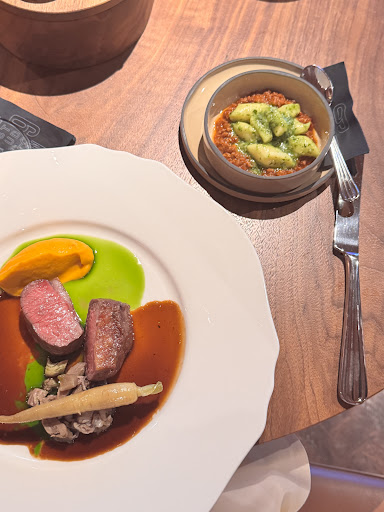 Read moreЭто новое открытие этого города. Несомненно это номер 1 ресторан фульды. Тут великолепно все , прекрасный сервис, внешний вид заведения и персонала , очень вдохновляющая работа кухонной команды, за которой можно проследить благодаря открытой кухне. Также конечно , презентация блюд и вкус. Из первого что хочу заметить , вроде бы классический и обычный коктейль Aperol Spritz, был приготовлен идеально , лучше чем в некоторых ресторанах Италии. Дальше поговорим о блюдах. Всего мы попробовали 6 разных позиций. Мы заказали 2 разных сета. 1 классический сет из 3 блюд за 58€, и второй сет со спаржей за 49€. Вначале нам принесли хлеб с маслом , специями и кремом из цветной капусты вроде. Потом мини комплимент от кухни , огуречный мусс. Ну это единственное что я не доела , вкус не мое. Первым блюдом и сета была закуска с Тартаром и лосося , маринованной репой , икрой из рыбы и мороженным и крем фреша. Было вкусно . но мороженое было безвкусным. Может с мороженым стоит что нибудь подумать другое. В остальном хорошо. Далее принесли основное блюдо. Было очень вкусное мясо, идеальной прожарки , и заметно что это мясо которое достаточное время выстаивалось , для того что бы не было лишней крови. Ягненок с пюре из батата , превосходно ! Также маленькая тарелочка с ньёками , соусом болоньезе и соусом из черемши. Вкусно. Но самое завораживающее и то что заставит меня вернутся ещё раз был десерт. Меня поразила то как много деталей было изготовлено, что бы вместе собрать идеально гармоничную композицию. Лимонные вкусы в этом десерте были очень приятными. Сорбет из базилика, освежающе и без навязчивого вкуса. Воздушный мусс из йогурта с нотками Лайма. И гели и курды из лимона б отлично дополняли свежий десерт. Также на конец нам принесли мини десерты которые тоже были про сто неворотяными. Самый лучший лимонный тарт, и конфета с фисташковым кремом белым шоколадом и лесными орехами. Браво команде за...