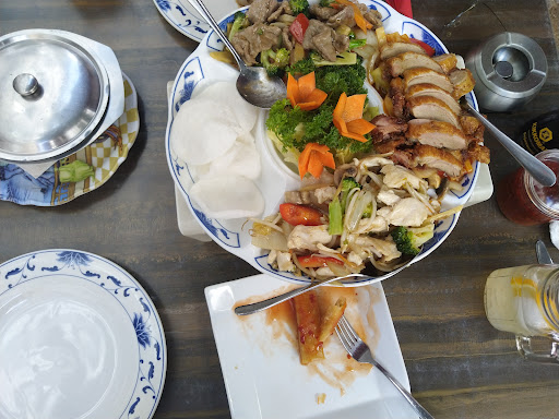 On the one hand I want to give it 3 stars, on the other 4. We ordered a chef's dish for 3 people. Everything was very tasty. It was spoiled by the following: About 10-15 minutes after we started eating, the hot sauce was taken away from us to another table. I wanted to try adding it to other dishes. They put too much starch in the food! After the food had cooled down all the sauce became like kisel, this is the first time I've seen this, although, I often go to Asian restaurants. Of the good stuff: The meat is delicious; I don't like bamboo, but I chose it here. Particularly tasty in the duck and pineapple dish, yummy. Constantly asked if all is ok. The inside of the place is very beautiful! It's fabulous! Alas, I saw it when I went to the toilet. They bring fortune biscuits with the bill. It was very nice. -the place lets you take food to go. I saw a few people ordering. You can bring your kids. There was a dad with 2 little sons...