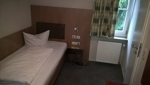 Read moreAs others have noted, this hotel is not in the city proper of Fulda, but it was just a short drive from Fulda. The check-in desk doubled as the restaurant's "hostess" station, and was cramped and lacked privacy. The staff was pleasant and courteous. Our room was up one flight of stairs. It was a very small room with a bed, bedside tables, small desk and wardrobe. The bathroom was also small--clean but basic. The bed was fairly comfortable, but the 2 pillows they gave us were the flattest things we had ever seen and we wished we would have brought our own pillows. There were no wash clothes in the bathroom. The nice thing about the hotel was that there was a nice restaurant downstairs which is obviously popular with the locals. The food was good, but nothing special. We paid for the breakfast buffet when we booked our room; it was 6 Euros per person. Again okay, but nothing special. I don't think we would go out of our way to stay here again. The best thing about our room was that it...