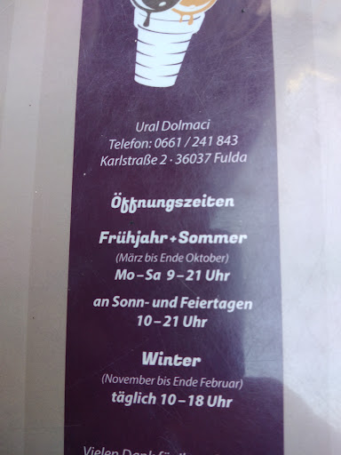 Read moreLeckeres Eis, aber unfreundliches und desinteressiertes Personal an der Theken-Ausgabe. Auf mehrmalige Nachfrage, welche Zutaten das lilane Minion-Eis hat, erhielt ich lediglich die Antwort, dass es nach Erdbeere schmeckt. 3 Personen haben es probiert und keiner konnte es essen. Nach Erdbeeren schmeckt es nicht, eher Bach irgend etwas extrem künstlichen. Wir mussten alles wegschmeißen und neues Eis kaufen. Ich fragte freundlich, ob das dann zum halben Preis ginge, weil das Minion-Eis nicht nach dem schmeckt, was uns gesagt wurde. Aber ich musste erneut den vollen Preis bezahlen. Das fand ich wirklich sehr enttäuschend. Wir besuchen die Eisdiele seit es sie dort gibt, aber das ging gar nicht! Und was da jetzt drinnen war, weiß ich immer...