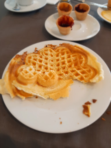 Besuch des Cafés am frühen Samstagnachmittag. Die Einrichtung hat was von einem Warteraum; harte Holzstühle, lieblos mit Strohblumen (im Januar)dekorierte kleine Tische. Es dauert ewig bis die Tische durch das Personal abgeräumt und abgewischt werden. Leider ist das Personal total genervt, unfreundlich und überfordert. Ewig lange Wartezeiten. Auf alles! Als ich meine Bestellung persönlich an der Theke aufgeben wollte, wurde ich vom Service komplett ignoriert. Nachdem endlich der Kaffee an unserem Tisch serviert wurde, aus der Thermoskanne, war er kalt. Auf der anscheinend ungewürzten, völlig geschmacksneutralen Tagessuppe hatte sich bereits eine Haut vom langen Stehen in der Küche gebildet, das beigelegte Brötchen hart und trocken. Auch alle übrigen Speisen die wir probiert haben, waren fad und geschmacklos, inkl. der Torten. Dafür war der Preis gepfeffert! Auch die tolle Aussicht hat unseren negativen Gesamteindruck nicht verbessert, auch wenn wir von dem Inklusionprojekt begeistert sind, fehlt eine Leitung die die Übersicht behält. Sehr zu wünschen lässt auch der Service, die Begeisterung und Motivation beim gesamten Team. Sehr, sehr schade!! Das war somit unser letzter Besuch. Es gibt bessere und günstigere...