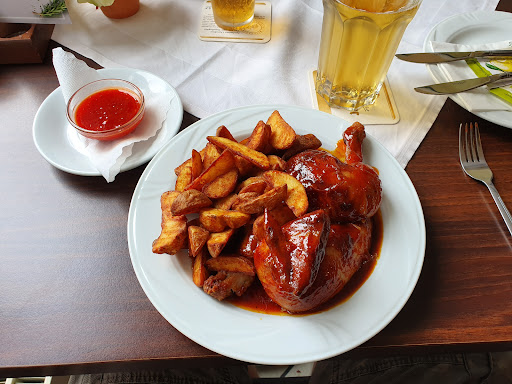 Die guten Bewertungen können wir absolut nicht nachvollziehen. Wir hatten im Restaurant eine Ente mit Klößen und Rotkohl sowie ein halbes Hähnchen mit Pommes und Krautsalat. Pommes und Krautsalat waren richtig gut, alles andere leider fast ungenießbar. Das Hähnchen war überwiegend trocken und geschmacklich weit hinter jedem Supermarktparkplatz-Hähnchengrill-Wagen. Die Ente sehr zäh, serviert mit einer abscheulich schmeckenden Soße und sehr wässerigen Knödeln ohne Eigengeschmack. Die nette und sehr gute Bedienung tat uns sehr leid, als sie die Anwesenheit ihres Chefs leugnen musste, dieser sich dann mit den Worten „ich hab damit ja nichts zu tun, aber...“ uns gegenüber rechtfertigte. Nach ausladender und anstrengender Diskussion, dass es allen anderen Kunden außer uns bislang immer geschmeckt hat, haben wir dann - bis auf die Ente - die Rechnung beglichen und sind gegangen. Wir werden nicht...