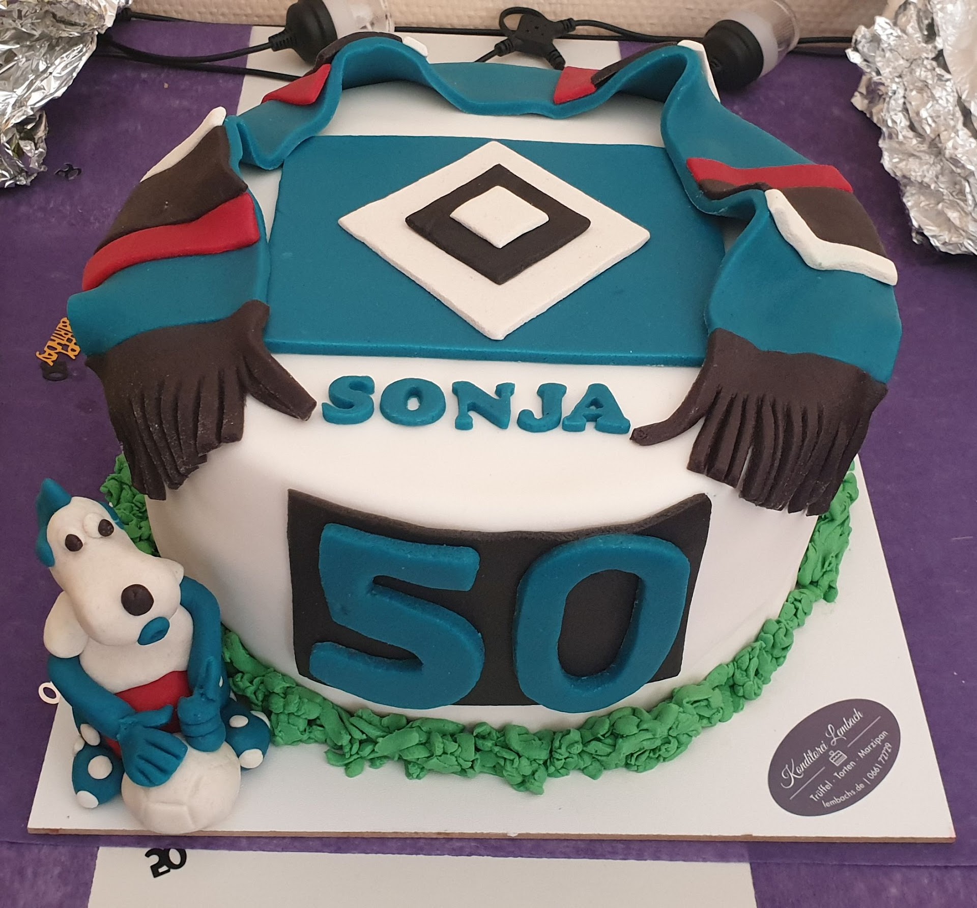Für den 50. Geburtstag meiner Frau hatte ich mir per Zufall eine Konditorei in Fulda ausgesucht und "nichtsahnend" eine HSV-Torte bei Hr. Lembach bestellt. Ich schickte ihm ein paar Bilder zu und gab ihm ein Budget. Als wir dann die Torte abholten, trauten wir unseren Augen nicht - einfach der absolute Hammer. Super verpackt nahmen wir sie also mit und waren die ganze Fahrt nach Hause noch "geflasht". Wir können nur sagen, die Torte schmeckte nicht nur allen fantastisch, sondern sie sah auch wirklich TOP aus. Ernsthaft: Wir trauten uns wirklich nicht die Torten anzuschneiden - so schön war sie. Naja, wir mussten dann dem Druck und Hunger der Gäste nachgeben und die Torte anschneiden - was uns schon fast weh getan hat. Jederzeit wieder und absolute Empfehlung von uns. Danke noch einmal an die Konditorei Lembach für diese gelungene Torte. Sie war ein echter "Eyecatcher" unter allen Torten. Sonja und Oliver