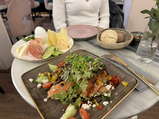 Read moreDas war leider garnichts. Wir hatten uns heute zum Frühstück verabredet und uns sehr gefreut, da wir von sehr weit anreisen, uns selten sehen und daher einen schönen Morgen verbringen wollten. Lieber Herr, der uns heute Morgen so bedient hat: Bitte Wechsel in ein anderes Business oder lass es bleiben! Absolutes No Go, so ein Benehmen gegenüber seinen Gästen an den Tag zu bringen. Als wir um 09:15 Uhr bestellten, kamen noch 4 weitere Personen in das Café, also sprich es war fast nichts los. Meine Freundin musste 30 Minuten auf ihren Kaffee warten…um 10:15 erhielten wir unser Frühstück, wobei die Hälfte fehlte und die Portionen eine absolute Frechheit waren…mein Brot war nicht frisch, eine sehr dünne Schicht Avocado war darauf geschmiert und im Ganzen eine Scheibe Lachs die auf die zwei Brote geteilt wurde…verborgen durch einen Berg Salat…angerichtet ganz nett, aber eine Mogelpackung….bei meiner Freundin fehlte der Lachs, der Joghurt und die Früchte, patzig wurde dies knapp 40 (!) Minuten später nachserviert. Nachdem er bei Nachfrage aufbrausend wurde und das Tablett auf die Theke knallte. Nach einen Löffel für die Eier trauten wir uns nicht mehr zu fragen. Getränkenachbestellung wurde vergessen. Die Nachbartische warteten auch ewig lange. Eigentlich hätten wir gehen sollen. Aber bei den Wucherpreisen (17,50 Euro und 13,50 Euro, siehe Bilder) haben wir uns entschieden das qualitativ minderwertige Frühstück zu essen. Leider nie wieder für uns und ein Klares nicht...