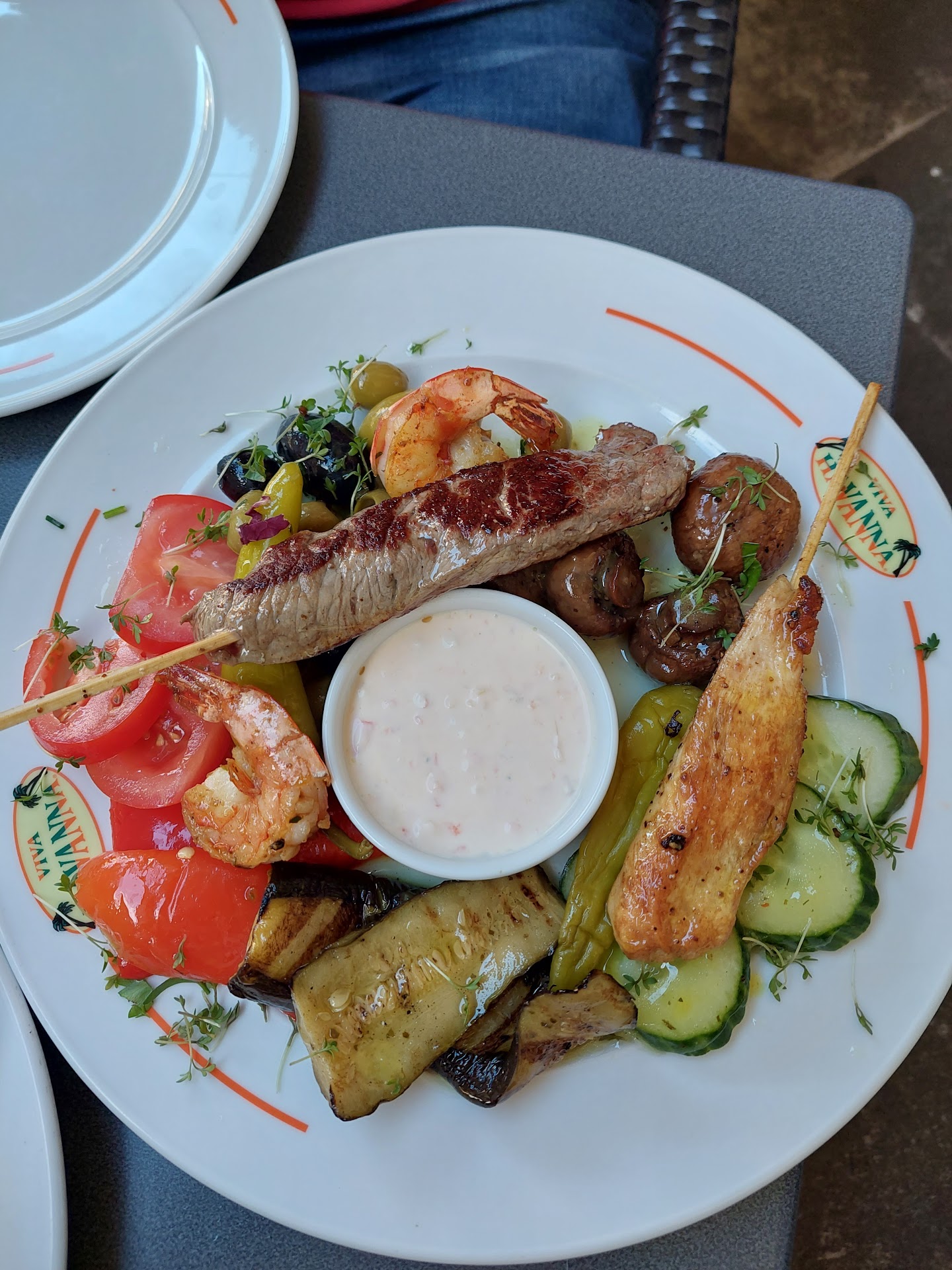 Read moreVery tasty food, good music and good location. The Restaurant has seating inside and outside. It was the month of May so we sat outside. If I would have sat inside, I would have left immediately as this place portrait know criminals (Che Guevara and Fidel Castro) as something Cuba has to be proud off. I only found out we I went inside to the Restroom. Staff was not very attentive and Menus are only in German. I had to get up a couple of times to ask server for extra...
