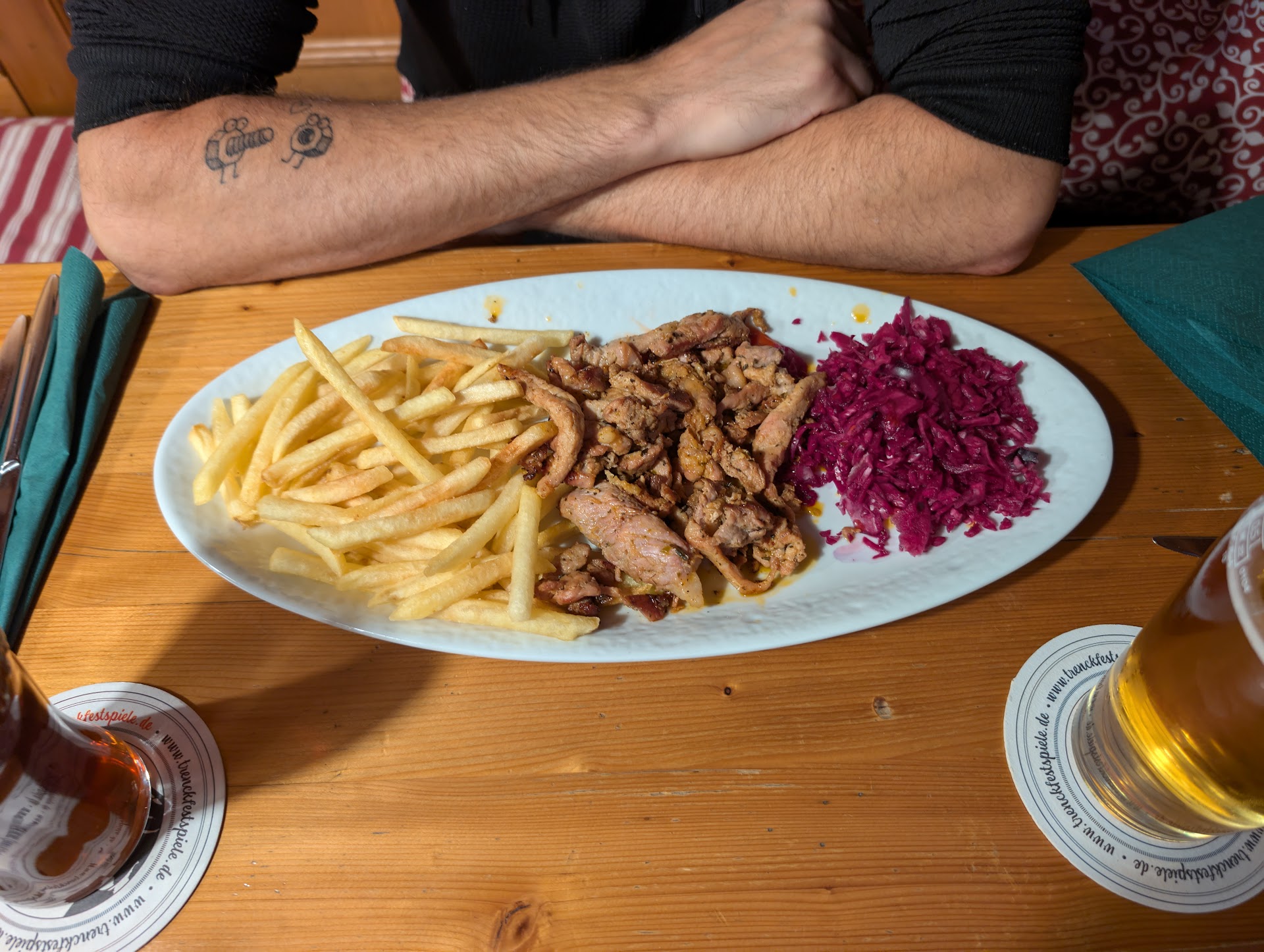 Wir waren hier zu fünft Mittags um ca. 11.30 Uhr essen und können die guten Bewertungen absolut nicht nachvollziehen. Bestellt hatten wir wir zwei Schnitzel, zwei Käsespätzle, einmal Rahmschwammerl mit Knödel und einen Schweinenacken mit Sauce. Insgesamt waren die Portionen sehr klein und vor allem das Fleisch war platt gepresst bis auf
