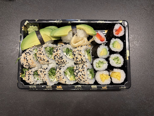 Das Sushi war ordentlich verpackt, und es wurden Stäbchen sowie Sojasoße mitgeliefert – ein schöner Service. Das Sushi selbst war frisch und sehr lecker, und die Auswahl an vegetarischen Alternativen ist wirklich groß.