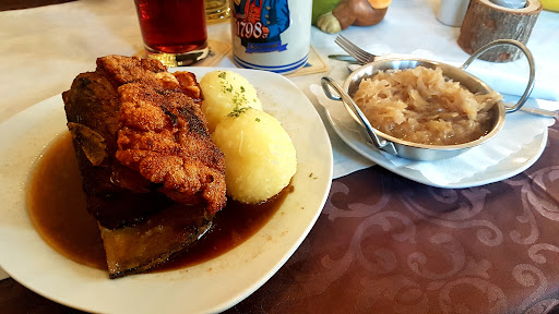 Wir entschieden uns allesamt für Schäufele, weil wir das länger nicht mehr hatten. Der erste Eindruck beim Servieren war gleichzeitig eindrucksvoll, wie ernüchternd! Die Portion war zwar sehr üppig und mit zwei Klößen serviert, doch eine Kruste auf der Schwarte war schlichtweg nicht vorhanden, sondern labbrig und ungenießbar! So macht Schäufele keinen Spaß - oder nur halb so viel - denn das aufgewärmte Stück war durchaus zart und die Soße schmackhaft. So schlossen wir satt, aber etwas enttäuscht diesen wundervollen Tag in Gößweinstein. Eine Empfehlung ist es nicht und werde hier das nächste Mal...