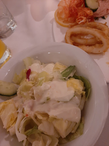 Salat-Dressing, wenn man das so nennen darf...(einfach Mayonnaise), keine Gewürze, alte Gurken usw Gyros sehr trocken Metaxasoße schmeckt wie Tomatensuppe aus der Dose, sehr wässrig Gyros-pfännchen mega dreckig, einfach unappetitlich Calamares, schlecht paniert und schmeckt wie Gummi