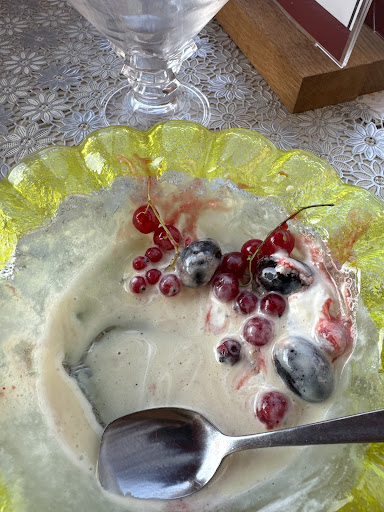 Big variety of dishes: cakes, Kuchen, Donuts, Pizza and salads, ice cream and spaghetti ice, milk shakes, cocktails, coffee and bears etc. Nice place, prices are okay, like 3,40 for a big cappuccino and cerca 2 euros for cakes and 1,3 for ice cream portion. A bit to full of people, so be ready to wait to...