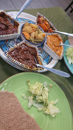 The food is rich in flavor, and the injera you order when you run out of your first portion is free! The presentation of the food is nice as well, the ambiente is super comfy, and i am running out of praise. because it's so good that there is not much to say, really. it's an experience to be had!