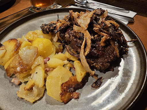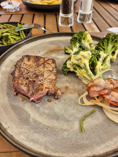 Read moreI ordered the Ribeye in Mediano (medium grilled, 15€) and it was really good. On the plate was the steak itself, not presliced, a bit of salad and a slice of orange. I was missing some sides so I took them from my families plates so I did not need to order any (which are 3€+). The staff was very professional and friendly and I even got a birthday dessert. I was the only one out of seven to order a seperate dish while the six of them ordered a grill plate for 82€. All in all we payed ~120€ for seven people. So you do not need to pay a big amount for good...