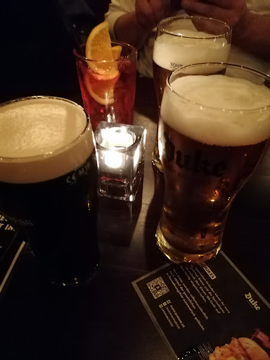 Read moreWaren am Samstag Abend da. Hatten uns auf einen schönen Abend wie früher im Irish Pub gefreut. Der leider lieblos präsentierte Musiker war das einzig Gute im Dukes. Aber ist halt ein neues Konzept und das muss eben nicht jedem gefallen. Die kleine Whiskey Karte und die überhöhten Preise passen dazu, aber der aufwendige Umbau muss ja auch schnell wieder refinanziert werden. Der Laden hat halt an Ambiente verloren. Früher konnte man auch schnell was bestellen, auch bei brechend vollem Laden. Heute muss man bei 3/4 Auslastung schon sehr lange warten, bis man auf Nachfragen denn mal bei der 2.! überforderten Bedienung bestellen darf. Als dann nach Ende der Musik nach ca. weiteren 45 Minuten später zwei einfache Burger serviert werden, waren die Getränke immer noch nicht da! Wir gaben der (übrigens 3. Bedienung) eine Minute Zeit diese zu holen. Ihre Frage:"hatten sie die bei mir bestellt?" Nach zwei Minuten war immer noch nichts da. Dann hatten wir ohne was zu essen und zu trinken alles an der Bar abbestellt und sind dann gegangen. Jetzt wurden plötzlich alle schnell. Vor der Tür wurden wir von Bedienung Nr. 1 aufgehalten und gefragt, ob sie uns die Rechnung fertig machen soll. Da wir verneinten kam dann eine Frau angerauscht, die sich als "Chefin" bezeichnete. Lt. Geschäftseintrag ist dies aber ein Felix .... Sie drohte gleich mit der Polizei! Wir überreichten Ihr unsere Visitenkarte und gingen wieder. Mal sehen was noch kommt. Von uns definitiv nichts mehr! Wir haben dann den Abend in einer, gemütlichen, vollbesetzten, kleinen Kneipe ausklingen lassen. Wurden dort sofort bedient!...