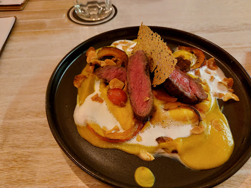 Read more"Flat Iron | jede Menge Kürbis" für 35 €: leider gestern eher ein größerer, hübsch angerichteter, lauwarmer Vorspeisenteller als ein Hauptgericht. Bedienung sehr freundlich, Inhaber weigerte sich aber, uns nach milder Kritik die bereits bestellte (!) Nachspeise zu servieren.