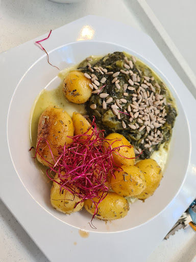 Als ich vor elf Jahren das erste Mal in der Turmmensa aß, war bereits klar dass sie außergewöhnlich gut ist. Schnitzeltag mit doppelt Kroketten war der Standart. Nach viel zu langer Zeit hatte ich jüngst das große Glück, um wieder öfter in dieser Mensa einkehren zu können. Es hat sich etwas getan, und zwar zu einem noch Besseren. Sie ist nun komplett vegetarisch und kommt ohne unnötige Zusatzstoffe der chemischen Industrie aus - und das hat dem Essen so viel Gutes getan! Das Gemüse ist knackig auf den Punkt gegart und gewürzt, die Kartoffelecken vollends perfekt knusprig gebacken, und die Gerichte immer noch saisional und zumindest auf eine moderne Version regional. Im café sind auch die Baguettes nun alle vegetarisch, und so gibt es nun die Laugenstange mit knusprig frittierter Roten Beete und Currycreme, was einfach eine ultraleckere und innovative Kombination ist. Die Frage, ob wenn man in einer Mensa kein Fleisch von wirklich guter Qualität zu den günstigen Preisen anbieten kann, es dann überhaupt noch anbieten sollte, hat die Turmmensa mit "Nein!" benatwortet und damit einen Gewinn für alle für alle geschaffen. Doch was ich neulich erlebte, erfüllte mich wahrhaftig mit Glückseeligkeit. Der (mittlerweile Gemüse-) Schnitzeltag bot zunächst das so altbekannt vertraute Ambiente von damals; doch was dann mein Auge dann an der Beilagentheke erblickte, ließ diese hell wie ein Weihnachtsbaum erstrahlen: Käsespätzle!🧀🤩😍 Nicht als Hauptgericht so wie in der Z-Mensa. Nicht mit viel zu wenig Käse und oben vertrocknet und verbrannt so wie in der Z-Mensa. Nein! Sondern als Beilage zum Beilagenpreis zusätzlich zu einem Hauptgericht (oder bei kanpper Studentenkasse auch als Sparmenü nur aus Beilagen bestehend). Und saftig und würzig und mit sooooo viel Käse wie man ihn sich nur wünschen kann! Zusätzlich zu einem grandiosen Schnitzel. Ich hätte vor Glück weinen können. Darüber hinaus stellt es, diese Käsespätzle armen Studenten, für die eine gesicherte, vollwertige, gesunde und proteinreiche Ernährung so unglaublich essentiell wichtig ist, zum Beilagenpreis anzubieten, eine solch derarte Ehrenhaftigkeit dar, dass sie mich mit schier endloser Wertschätzung beschenkt hat. Dafür gebührt den liebevoll netten, fleißigen, kreativen, und so eifrig engagierten Mitarbeitern der Turmmensa schlicht und ergreifend undenlich viel Ehre bis in alle Ewigkeit! Ich wünsche euch von ganzem Herzen, dass ihr noch lange Zeit derart großartig weiterzumachen vermögt.