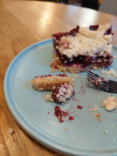 Read moreSmall place, crowded. Service was incredibly slow, totally under-staffed. Small selection of cakes for a Sunday afternoon. Cherry streusel had a hair in the bottom crust and the server just said "it happens sometimes, do you want another piece?" No apology at all! We declined another piece having lost our appetite. The server did not even take the effort to remove the plate. We covered the hair with a napkin that we had to get ourselves so we wouldn't have to keep looking at it. In the end, we were still charged for it....
