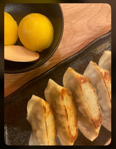 Zum Nachtisch gab es Mochi-Eis mit Mango-Geschmack, das wirklich gut war. Kein künstlicher Geschmack, sondern ein erfrischendes Finale für das ganze Mahl. Und natürlich noch eine Portion Gyoza, weil man nie genug von Teigtaschen bekommen kann, oder?