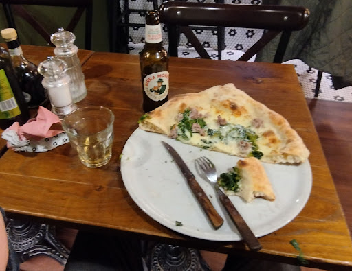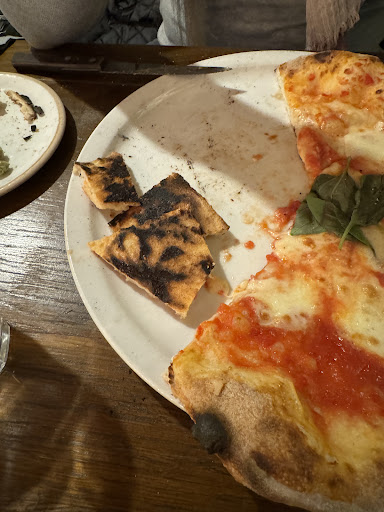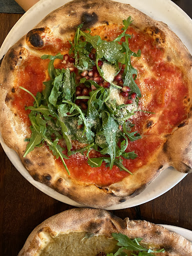Let's get us started with the dough. It clearly rests at least 24 hours, is baked in an wood oven and tastes perfect. There is still a little problem with the pizza variations that they offer with tomato sauce, as the center gets wet and does not stay crunchy. The solution they offer is quite good and smart: many of their pizzas do not have tomato sauce. Tr them. You won't be disappointed.