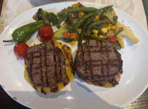 Read moreDas einzig positive vorweg das Fleisch war okay, ansonsten kleine, bis mittlere Katastrophe. Das Ambiente des Gastraumes erinnert weder an ein Steakhaus noch kann man in ihn das Essen der gehobenen Preisklasse genießen. Der Gastraum wird als Warenlager missbraucht, ebenso die angrenzende Bar. Wohlfühl-Faktor Fehlanzeige! Nach circa 1 Stunde Wartezeit in dem zauberhaften Ambiente, war es endlich soweit. Eigenartig angerichtet: Das anfangs erwähnt. erstklassiger Fleisch wurde auf einer gegrillten Ananasscheibe serviert, ohne dass dies auf der Karte erwähnt wurde, um ggf. noch einschreiten zu können. Die süß saure Ananas übertönte den Geschmack des Fleisches total. Die klassische Kräuterbutter fehlte jedoch. Auch ist sie auf der Karte nicht als Extra zu finden. Ich bestellte Kräuterbutter nach. Damit schien die Servicekraft gänzlich überfordert zu sein. Nach circa 3-4 Minuten, ohne dass der Weg in die Küche ansatzweise darauf deuten würde, dass meine Bestellung erledigt wird, hakte ich etwas energischer, mit der Bemerkung. „Die Butter müsse aufs heiße Fleisch“, nach. Dann kam sie in einer Schale, streichfähig mit Zimmertemperatur! Irgendwie unfassbar, selbst beim Billig.Discounter wird Butter im Kühlregal gelagert! Das Grillgemüse als Beilage würde ich mit einer drei minus benoten. Es ist noch viel Luft nach oben. Fazit, man kann auch erstklassiges Fleisch so darbieten, dass der Genuss auf der Strecke bleibt. gehobene Preise: JA gehobene Gastronomie: NEIN!