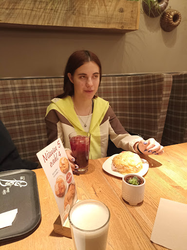 Rigtigt godt bageri, med hyggeligt siddeområde hvor man kan nyde alt fra kaffe og kage til sandwich og vand. Der var god og hurtig service og meget stort udvalg. Et dejligt sted f.eks. en hyggelig lille frokost på shoppeturen. Kaffen var god, både i den rene udgave og latte macchiato udgaven. Råvare og ingredienser var friske og produkterne smagte fint. Eneste grund til at det ikke bliver 5 stjerner, er nogle mindre detaljer omkring fremstillingen. Der var i en sandwich en del pesto direkte på indersiden af brødet så bunden af sandwitchen blev svampet og smattet, det skulle have været mellem indeholdet i stedet. Dernæst kæmpede basilikum smagen og rukula smagen med hinanden, det ville være en fordel med enten det ene eller det andet. Og sidst så bær mozzarella være øverst og/eller nederst. Men ud over disse små detaljer omkring tilberedning virkede resten af håndværket rigtig godt og det var rigtig dejligt brød. Et sted jeg nemt kunne finde på at...