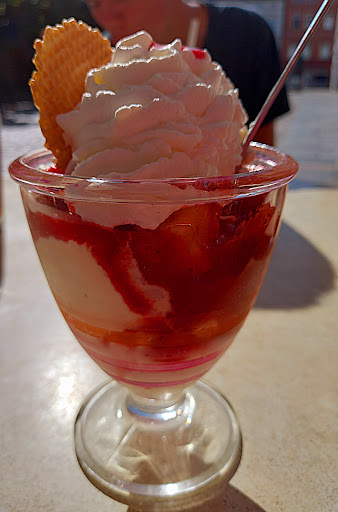 Völlig überteuert!!!! Wir wollten mit 4 Personen Eis essen gehen...gesagt getan. Der "Eisheidi" mal wieder eine Chance geben nach gut 10 Jahren. FEHLENTSCHEIDUNG. Keine Eis- oder Speisekarte. Am Ende 53,-€!!! gezahlt, keine Rechnung bekommen. Ich weiß noch immer nicht was dort ein Eisbecher, ein Kaffee oder ein Milchshake kostet. Ich gehe mal von ca. 10 Euro für nen Eisbecher aus keine Ahnung. Da sind nur 2! Kugeln Eis drin, etwas Sahne und in unserem Fall ein paar Erdbeeren. Was positiv zu nennen ist, ist der Geschmack und der Service. Daran gab es tatsächlich nichts auszusetzen, sehr lecker das Eis und die Getränke. Aber Preis und Leistung liegen hier Welten auseinander. Das war damit unser letzter Besuch in diesem Restaurant oder was es ist. Eine Speisekarte gehört dazu, aber das sagt man ihr schon ewig. Auch Herr Rach hat ihr das schon vor Jahren gesagt. Was hängen blieb ist, dass sie freundlicher sein muss. Das war sie auf jeden Fall. Sehr schade, dass sie ansonsten auf Ratschläge pfeift. Als Beispiel waren wir an einem anderen Tag in einem anderen Café den Geburtstag unseres Sohnes feiern...mit 10!!! Personen. Da haben wir 88,-€ auf der Rechnung gehabt. Und dort war wenigstens was im...