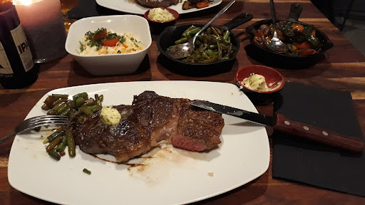 1a 350g irisches Ribeye! Habe selten so ein gutes Stück vom Rind bekommen! Auf den Punkt gebeeft kam das Fleisch nach nicht besonders langer Wartezeit samt der bestellten Beilagen (Bohnen mit Speck, Grillgemüse und eine Portion Coleslaw)an den Tisch. Angemerkt die Menge jeder einzelnen Beilage reicht im Normalfall für zwei😉