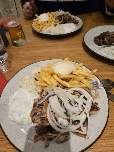 Das Essen schmeckt außerordentlich gut, griechisch halt. Die Zutaten schmecken frisch. Nur die Pommes müssten von besserer Qualität sein, dann gäbe es auch 5 Sterne.