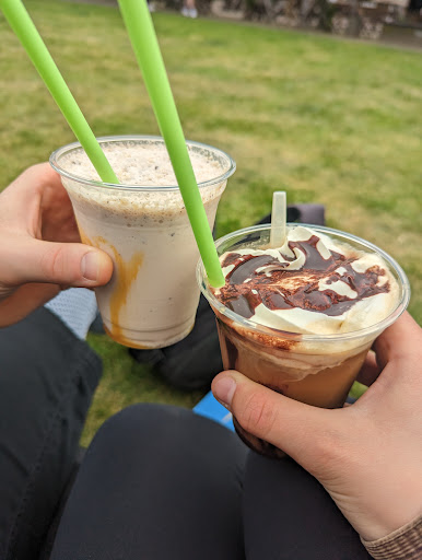 Read moreWir haben uns einen Eiskaffee und Cookiesmilchshake geholt. Der Kaffeegeschmack war Standart. Die Karamellsoße im Milchshake war sehr süß und hat den Geschmack vom Cookieseis übertönt. Warscheinlich ist Cookieseis auch nicht der beste Geschmack für einen Milchshake 😅🤔. Cool ist die Wiesenfläche direkt vor dem Geschäft, welche zum hinlegen und...