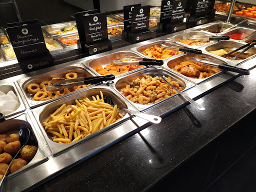 Allerdings hat der gesamte Service auch gelitten wenn es voll ist. Die kommen nicht hinterher die Tische zu bedienen. Es macht aber ein sehr schlechtes Bild, wenn 4 hinter der Theke stehen und "nichts" machen. Ich weiß nicht wo für die dort sind aber es macht ein schlechtes Bild wenn man nicht bedient wird weil es so voll ist und dann Personal zu viert rum steht und nichts macht. Wenn es voll ist, lässt das live cooking gewaltig nach. Es steht dort nur 1 Koch und die Schlange wird immer länger von den Leuten die etwas gebraten haben möchten. Natürlich macht er dann irgendwann schneller aber das ist ja nicht Sinn der Sache. Wir kommen dort hin wegen dem live cooking. Allerdings mussten wir leider alles zurück gehen lassen, da nichts was wir uns braten lassen haben durch war. Schade. Auch am Buffet ist man nicht Hinterher gekommen. Entweder waren die schalen immer leer oder es war schon sehr alt und angebacken durch die warmhalte behälter.