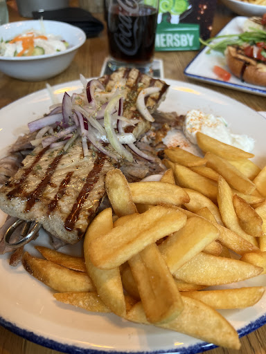Came here for Lunch. most places in this town have all same stuff and not much of quality but this was bit more unique like a hidden gem this little restaurant has lots of place to sit outside in summer or warm nights inside feels comfy gives you the feeling of being in norway restaurant by the sea, we noticed its made into sections about 3 or 4 sections bit confusing at start but after getting to know a little more it became very comfortable many ways to enter and leave there is a certain vibe to this restaurant nice calming music for having nights out or dates we ordered tomato soup for lunch and mythos salad smaller version along with one omellete filled with vegetables (olives paprica tomatos) it was new experience something i havent thought of along to that we got some cokes zero and my wife got a lachfillet dish (the dishes here are presented in a nice and home feeling style) my wife didnt like much the fish that it tasted very bland as to no taste but cant blame the owner its just that the product was not straight from the sea so flavors tend to disipate but honesty is here she loved the sause on it and said that it was very filling and enjoyable otherwise we got bunch of bread for free to snack on the house staff there is very friendly they reccomend when you are not sure and they pay attention to their guests to see if they are enjoying it and if they are fine thats very sweet when we wete about to order bit more they reccomended us to get smaller salad version of it and to just try what we ordered first before ordering more so they are not greedy for sales but care about their customers most restaurants dont care and just want to profit out of you. (overall i reccomend this place you get well fed taken care of and feel at home will definitely...