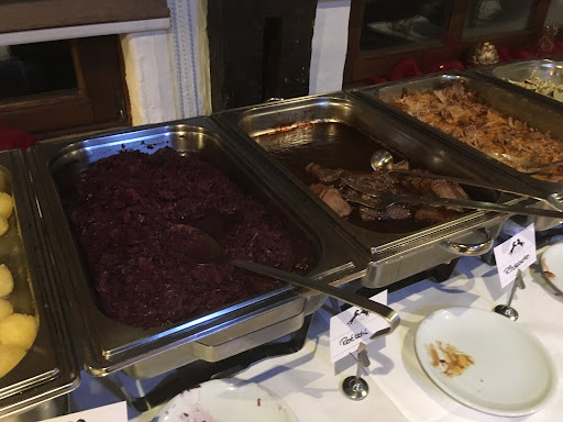 Wir waren mit 16 Personen zum Weihnachtsbüffet und Disco im Schwarzen Ross. Aufgrund der vorherigen Beurteilungen war ich gespannt was wir dort serviert bekommen. Gegen 18 Uhr war Einlass und man wurde zu den Tisch gebracht wo man den Abend verbringt. Die Bedienung war nett und hat uns den ganzen Abend begleitet. Die erste Getränkebestellung war schnell aufgenommen und auch genauso schnell waren die Gläser wieder leer, weil die ersten Runden in kleinen Gläsern serviert werden und erst nach dem Essen wurden auch große Gläser gebracht oder man bekam Flaschen an den Tisch. Das mit den kleinen Gläsern sollte man aber vielleicht nochmals überdenken, weil es doch ein wenig nervig ist mit den kleinen Gläsern 0,2 l. Das Essen war Super und alles war heiß und wurde perfekt gegart. Sobald irgendetwas leer war wurde umgehend nachgefüllt. Ich kann also nicht meckern. Was mir fehlte war Eis aber das ist meckern auf hohen Niveau, die Ente war Super mit der Soße und auch das Hähnchen. Anschließend ging es mit der Disco los und auch hier war alles Super die Musikrichtungen ging in alle Richtungen, weil der DJ sich auf das Publikum eingespielt hat. So war die Tanzfläche immer voll und es gab auch genug zu trinken. Also ein gelungener Abend für das komplett Paket von 49,90€ auch die alkoholischen Getränke waren kein Fussel und deshalb hatte fast keiner am nächsten Tag einen...