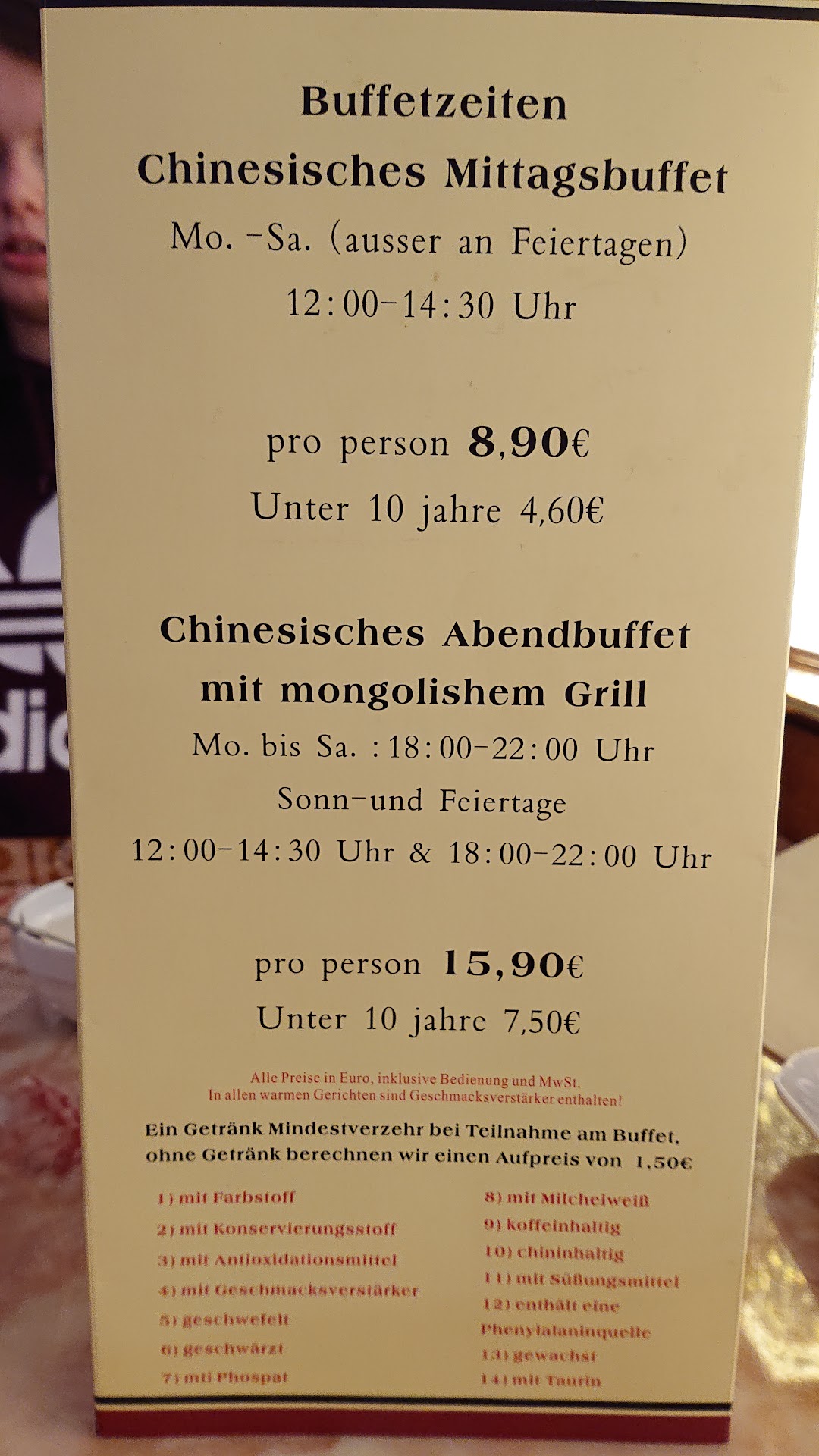 Read moreDas Restaurant erinnert mehr an eine Lagerhalle welche mit dem üblichen "Buffet Chinesen" - Mobillar ausgestattet wurde als an ein Restaurant. Das Personal ist nicht besonders aufmerksam, sprich Diverse Speisen werden garnicht oder nur schleppend nachgefüllt. In den 2h des Aufenthaltes wurden lediglich die Frühlungsrollen nachgefüllt. Bei der Ente (siehe Bild) wurde garnicht aufgefüllt oder ausgetauscht, diese wurde lediglich über die Dauer der schleichenden Vertrockung überlassen in der Hoffnung einer wird sich schon den trockenen Stücken erbarmen. Der Geschmack der Speisen ist für mein empfinden qualitativ und geschmacklich eher niedrig anzusetzen. Hinzu kommt der Aufbau der Halle. Da es ein großer offener Raum ist sind alle Geräusche laut stark zu hören, vorallm das infernalische Kindergebrüll aus der Spielecke. Welches von den Eltern entweder gefördert oder ignoriert wird. Zuletzt die Nachspeise. Auch hier gähnende Leere und das Eis möchte man garnicht erst anfassen bei dem Anblick des Behälters in dem sich der Löffel befindet (siehe Bild). Aus den genannten Gründen halte ich eine Bewertung mir 1 Stern für angemessen und werde das Restaurant nicht noch...